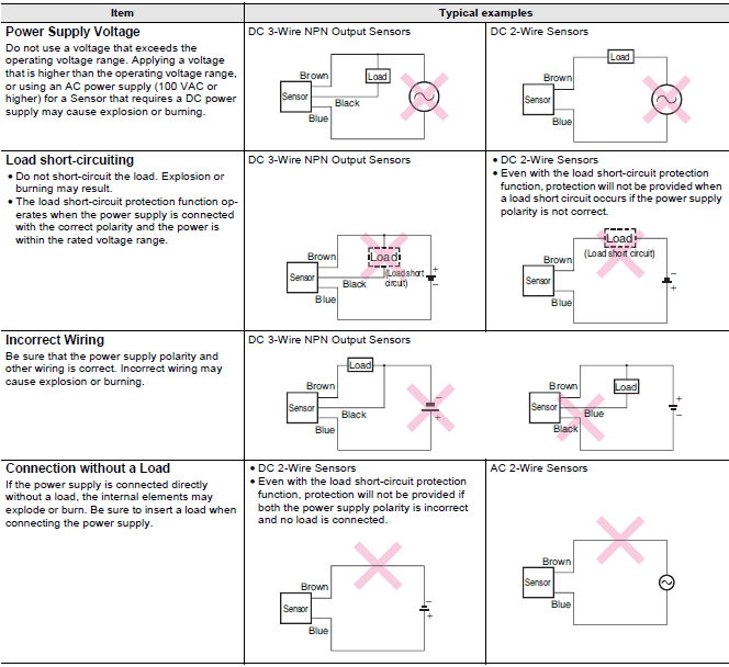 Note: DC 2-Wire Sensors have a residual voltage of 3 V. Check the operating voltage of the relay before use.