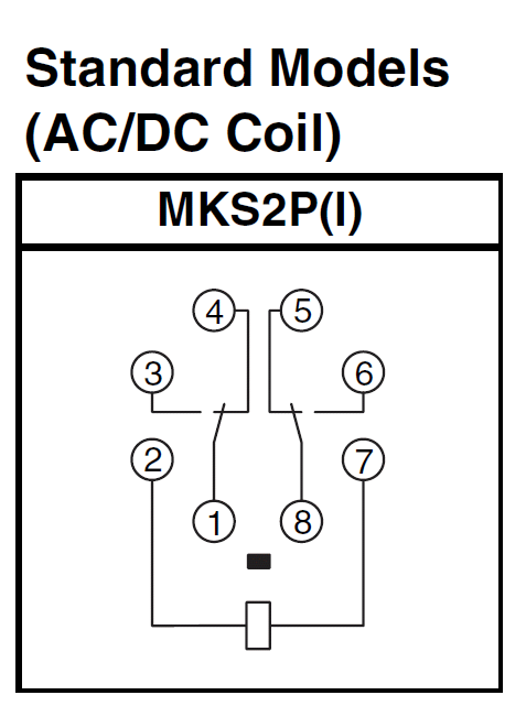 | Contact | Contact rated load | 250 VAC 10 A (NO contact: Resistive load) 250 VAC 5 A (NC contact: Resistive load) 250 VAC 7 A (Inductive load (cosφ = 0.4)) 30 VDC 10 A (NO contact: Resistive load) 30 VDC 5 A (NC contact: Resistive load) | Max. contact voltage | 250 VAC 250 VDC | Max. contact current | AC: 10 A DC: 10 A | Maximum switching power | 2500 VA (NO contact: Resistive load) 1250 VA (NC contact: Resistive load) 1750 VAAC (Inductive load (cosφ = 0.4)) 300 W (NO contact: Resistive load) 150 W (NC contact: Resistive load) | Contact form | DPDT | Contact method | Single | Contact material | Ag alloy |