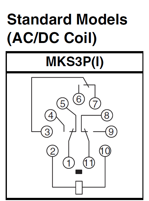 | Contact | Contact rated load | 250 VAC 10 A (NO contact: Resistive load) 250 VAC 5 A (NC contact: Resistive load) 250 VAC 7 A (Inductive load (cosφ = 0.4)) 30 VDC 10 A (NO contact: Resistive load) 30 VDC 5 A (NC contact: Resistive load) | Max. contact voltage | 250 VAC 250 VDC | Max. contact current | AC: 10 A DC: 10 A | Maximum switching power | 2500 VA (NO contact: Resistive load) 1250 VA (NC contact: Resistive load) 1750 VAAC (Inductive load (cosφ = 0.4)) 300 W (NO contact: Resistive load) 150 W (NC contact: Resistive load) | Contact form | 3PDT | Contact method | Single | Contact material | Ag alloy |