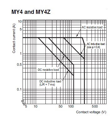 | Contact | Contact rated load | 220 VAC 3 A (Resistive load) 220 VAC 0.8 A (Inductive load (cosφ = 0.4)) 24 VDC 3 A (Resistive load) 24 VDC 1.5 A (Inductive load (L/R = 7 ms)) | Max. contact voltage | 250 VAC 125 VDC | Max. contact current | AC: 3 A DC: 3 A | Maximum switching power | 660 VA (Resistive load) 176 VA (Inductive load (cosφ = 0.4)) 72 W (Resistive load) 36 W (Inductive load (L/R = 7 ms)) | Contact form | 4PDT | Contact method | Single | Contact material | Au plating + Ag |