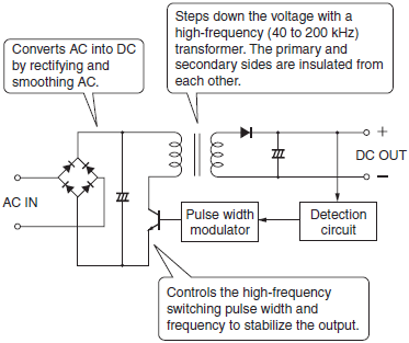 To obtain electricity, we use commercial AC power that is sent from power plants. But the integrated circuits and electronic components used inside office automation equipment, factory automation equipment, and other electronics cannot be operated with the AC voltage, and they will be damaged by the high voltages.