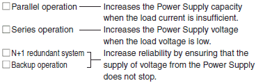 Consider the operating methods to increase output capacity, voltage, and reliability. (Not all models of Power Supply support all of the operating methods.)