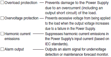 Note:The output of the Power Supply may not rise or may rise slowly due to the ambient temperature and the startup current and inrush current of the load connected to the Power Supply, even when the load is within the Power Supply capacity during normal operation.